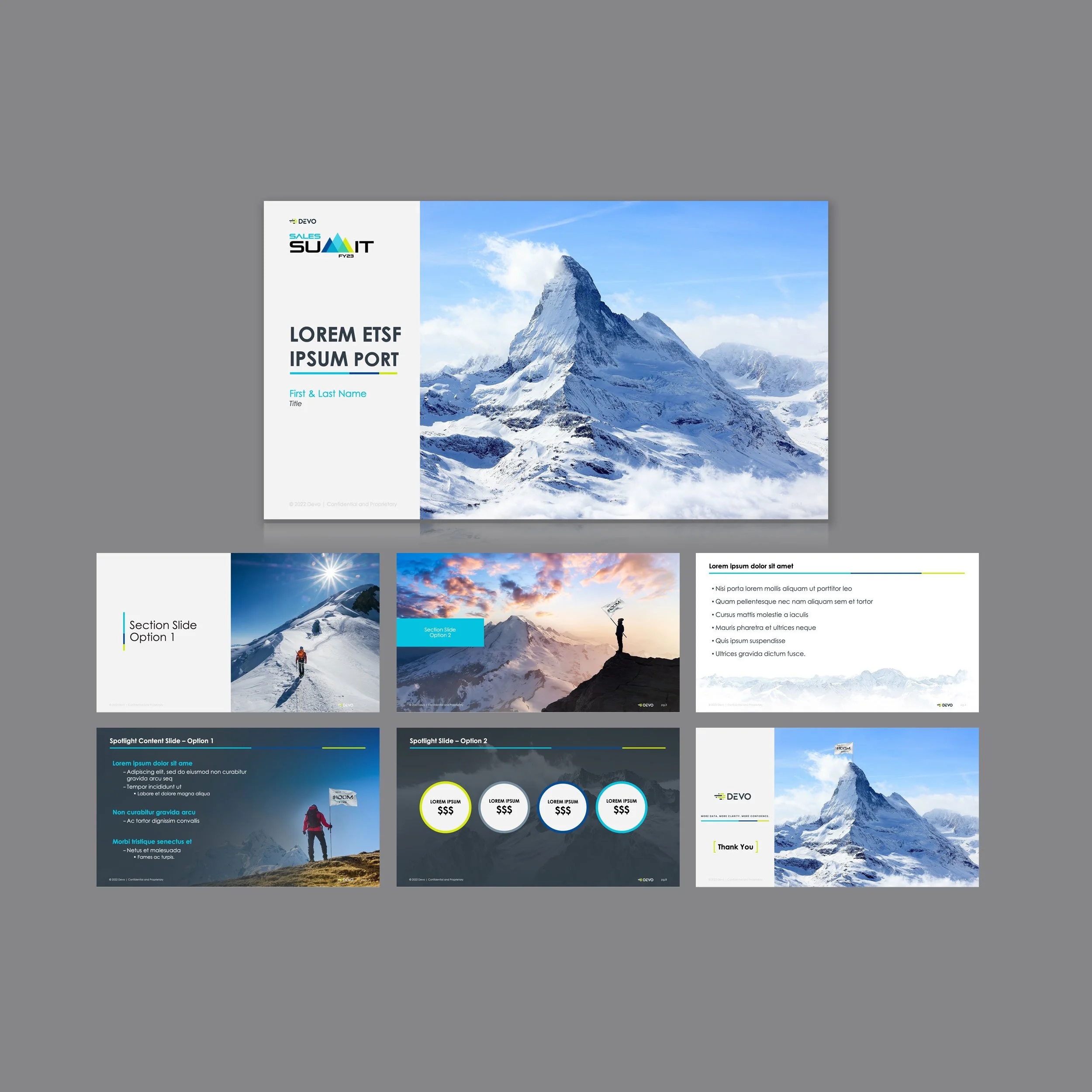 For this project, I created a logo, tshirt and PowerPoint deck template inspired by the sales event theme. The design centered around Devo’s success but acknowledged that there were and will always be new peaks to challenge and ascend.